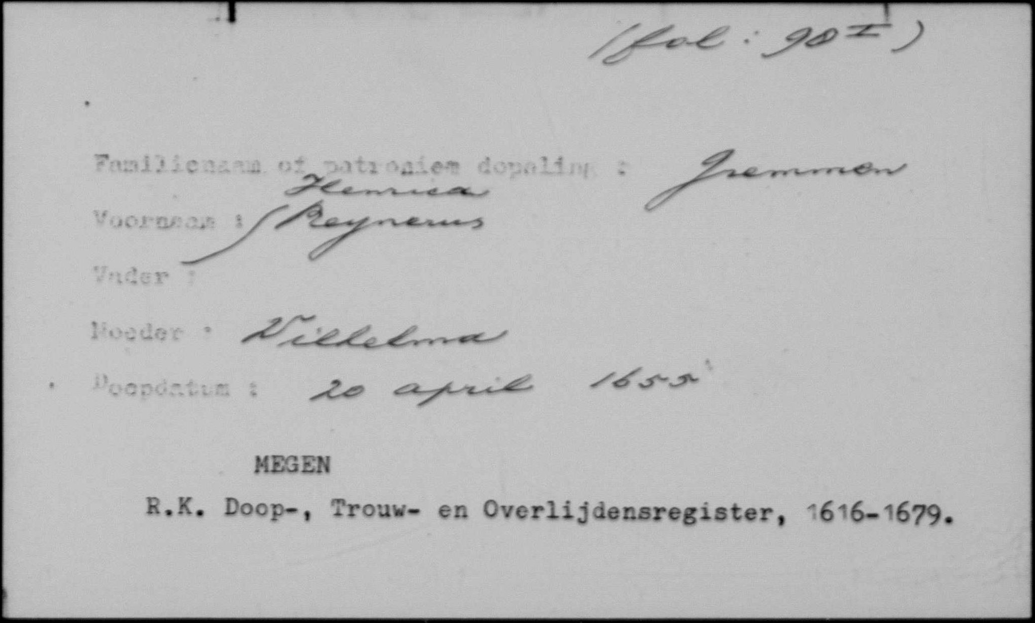 | dochter van Reijnerus Gremmen (1619-?) en Wilhelmina Arnoldi (?-?) | ||