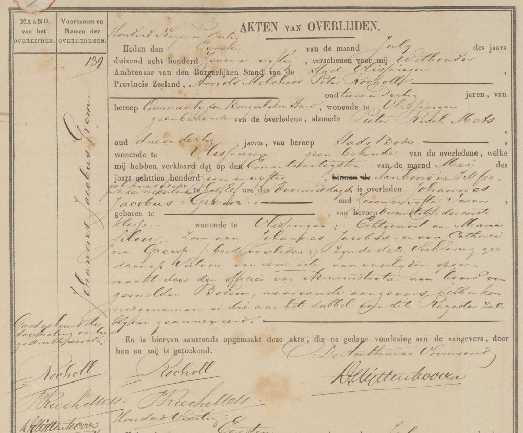 Overlijdensakte BS Vlissingen: