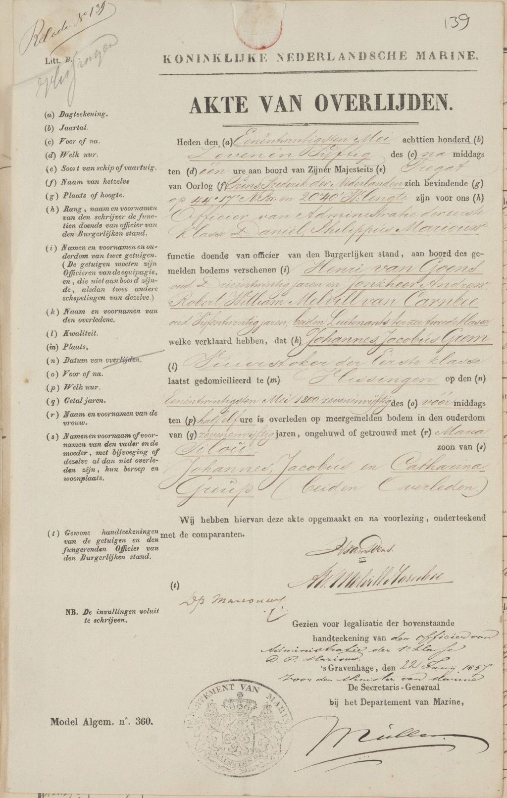 Overlijdensakte Koninklijke Nederlandse Marine:![]() |