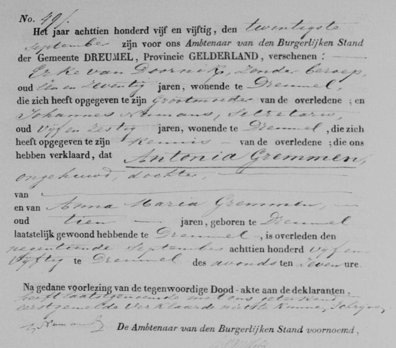 | home stamboom Gremmen | Antonia Gremmen (1845-1855) | Gremmen stamboom home |
