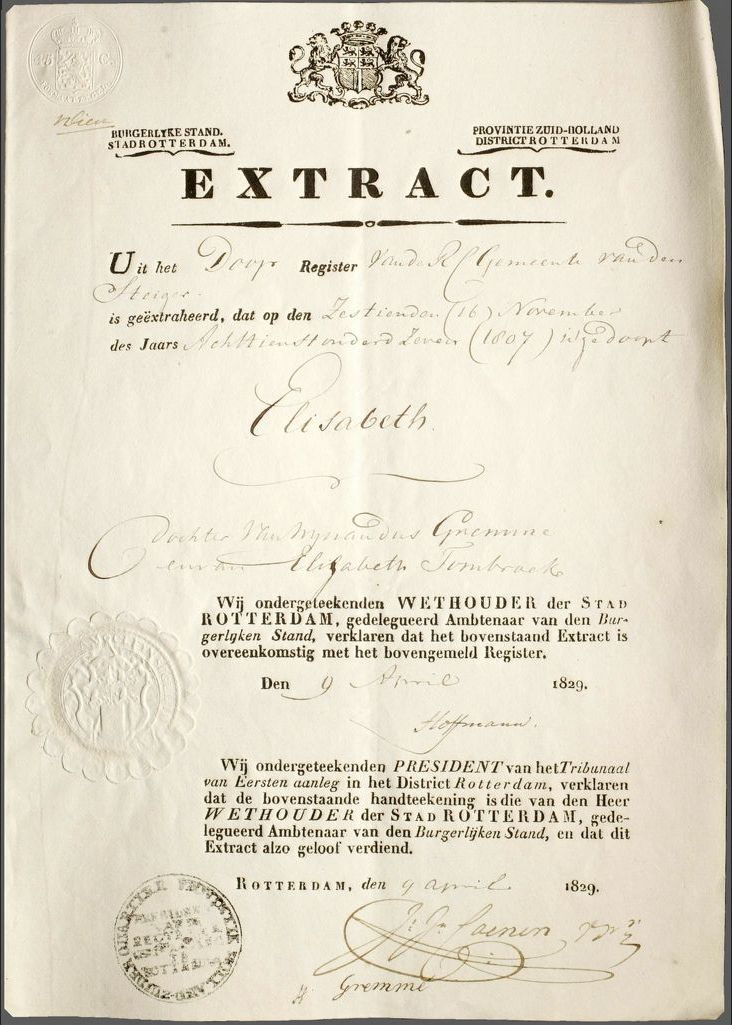 | dochter van Wijnandus Gremme (1750-1827) en Elisaneth Tombroek (1773-1833) | ||