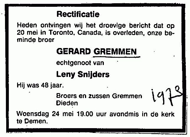 | home stamboom Gremmen | Gerardus Joannes (Gerard, Gerry) Gremmen (1929-1973) | Gremmen stamboom home |