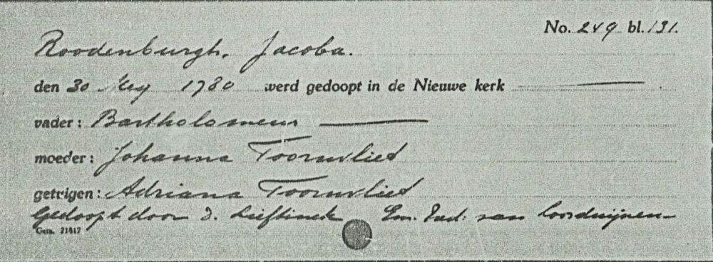 Doopakte. 30 mei 1780. Den Haag, Nieuwe Kerk.