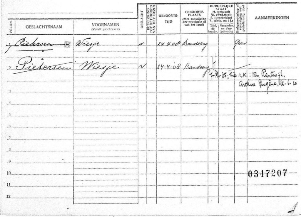 | home | Wiesje Pietersen (1908-?) gehuwd met Arthur Eugène van Rantwijk (1910-?) |