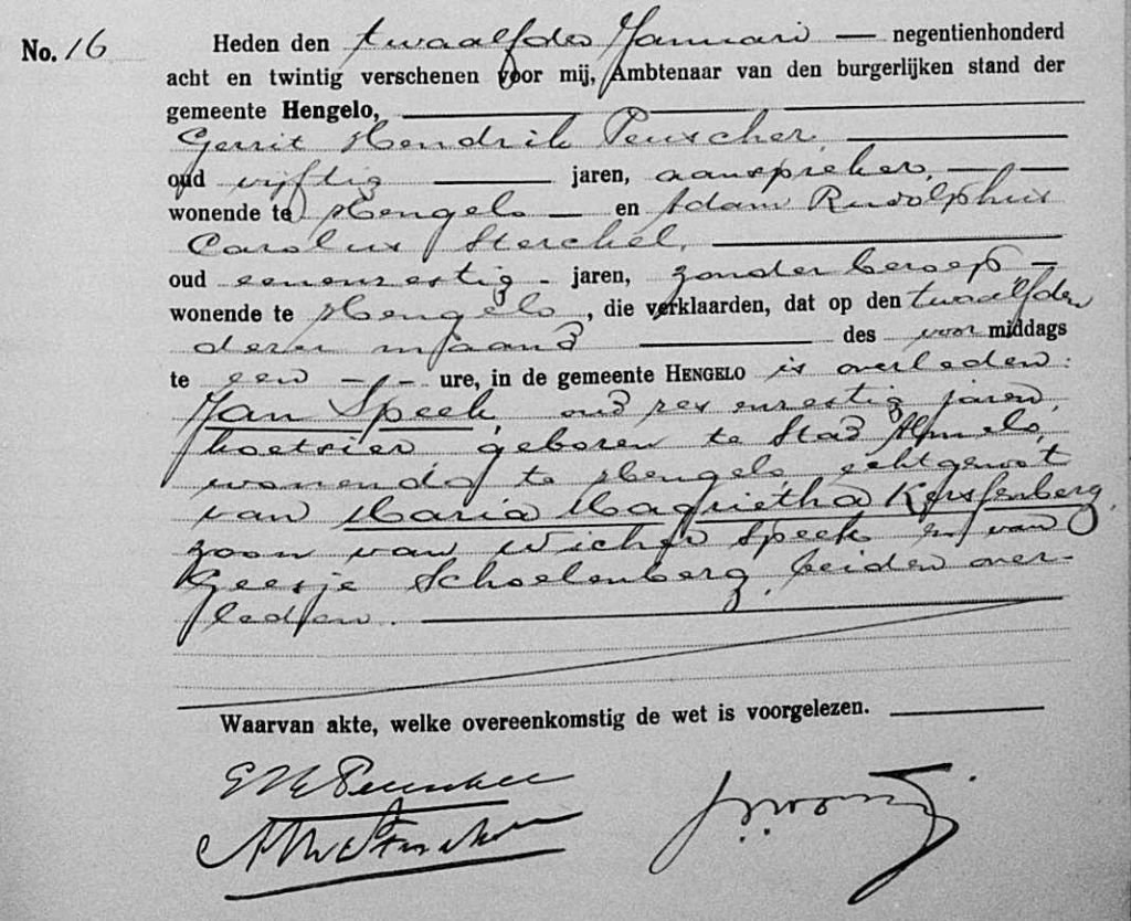 | home | Jan Speek (1861-1928) gehuwd met Maria Margrietha Kerssenberg (1866-1937) |