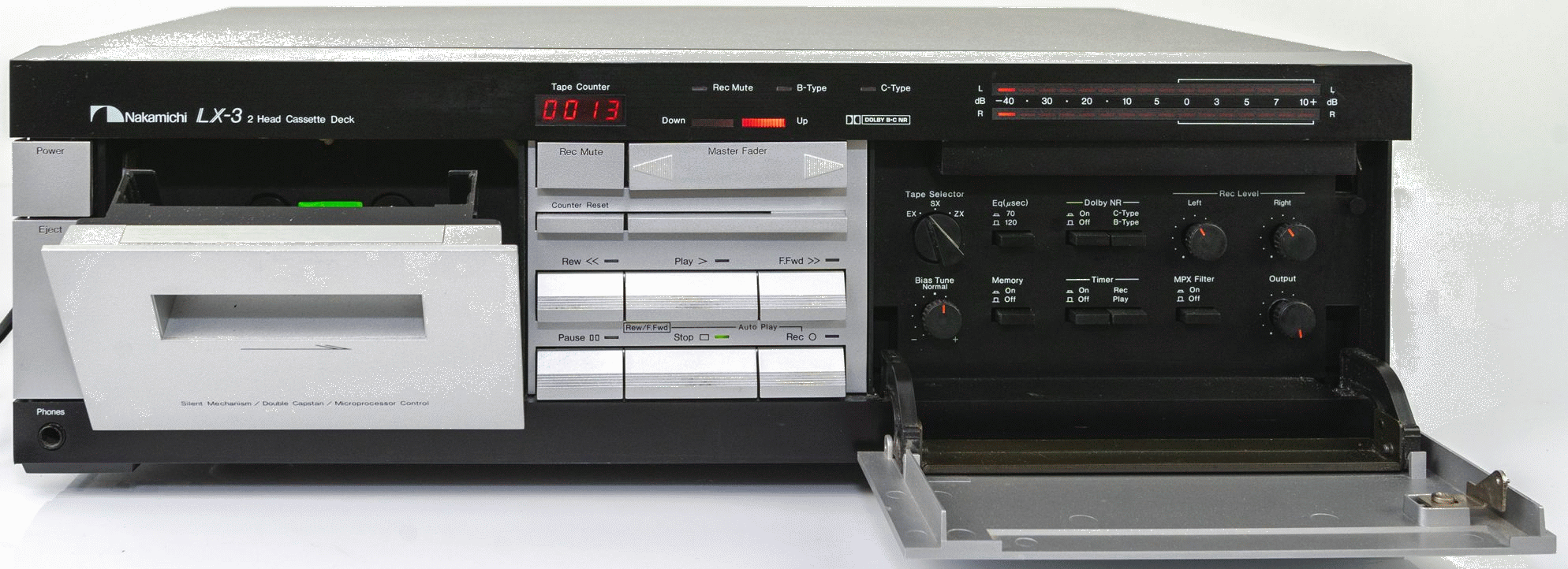 Ik begrijp, en waardeer ze, dat er een aantal aficionado's zijn die het gebruik ervan in ere willen houden. Heeft u nog collectie cassettes die u zo goed mogelijk wilt afspelen en zoekt u een kwalitatief uitstekend deck: Nakamichi en dan vooral de LX-3, de ZX-7, ZX-9, DR-1, DR-2, CD-1, CD-1.5. De Dragon is de heilige graal, dus belachelijk geprijsd. Met een beetje zoeken zijn er twee specialisten te vinden die Nak's repareren en reviseren: