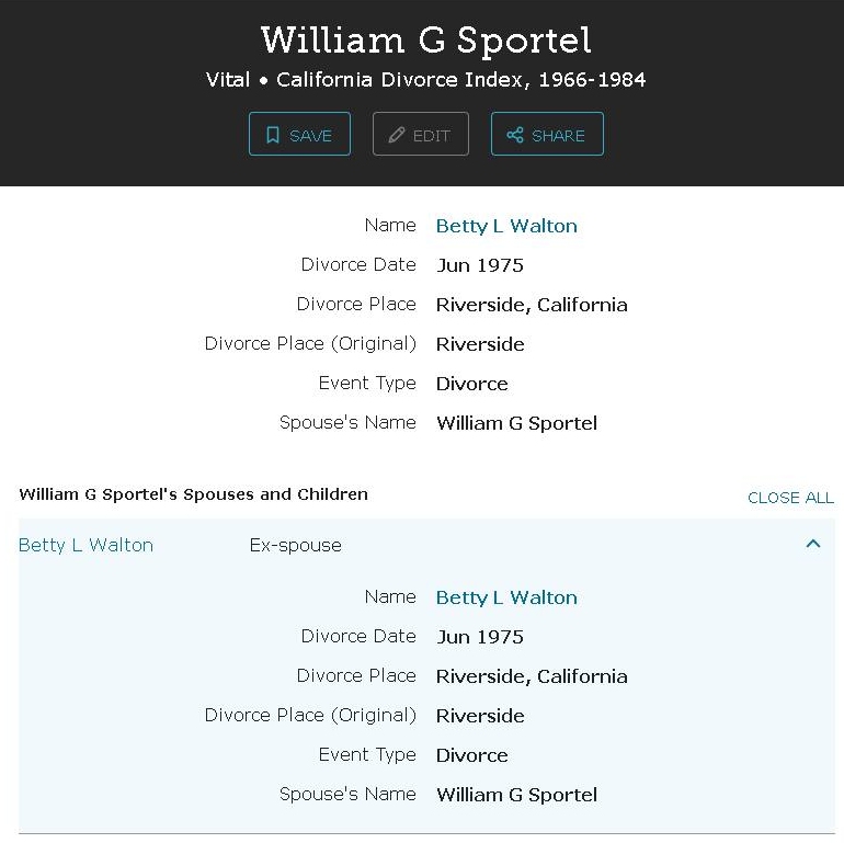 | son of Charles William Sportel (1908-1988) and Lucille Dorothy Seltrecht (1911-1979) | ||