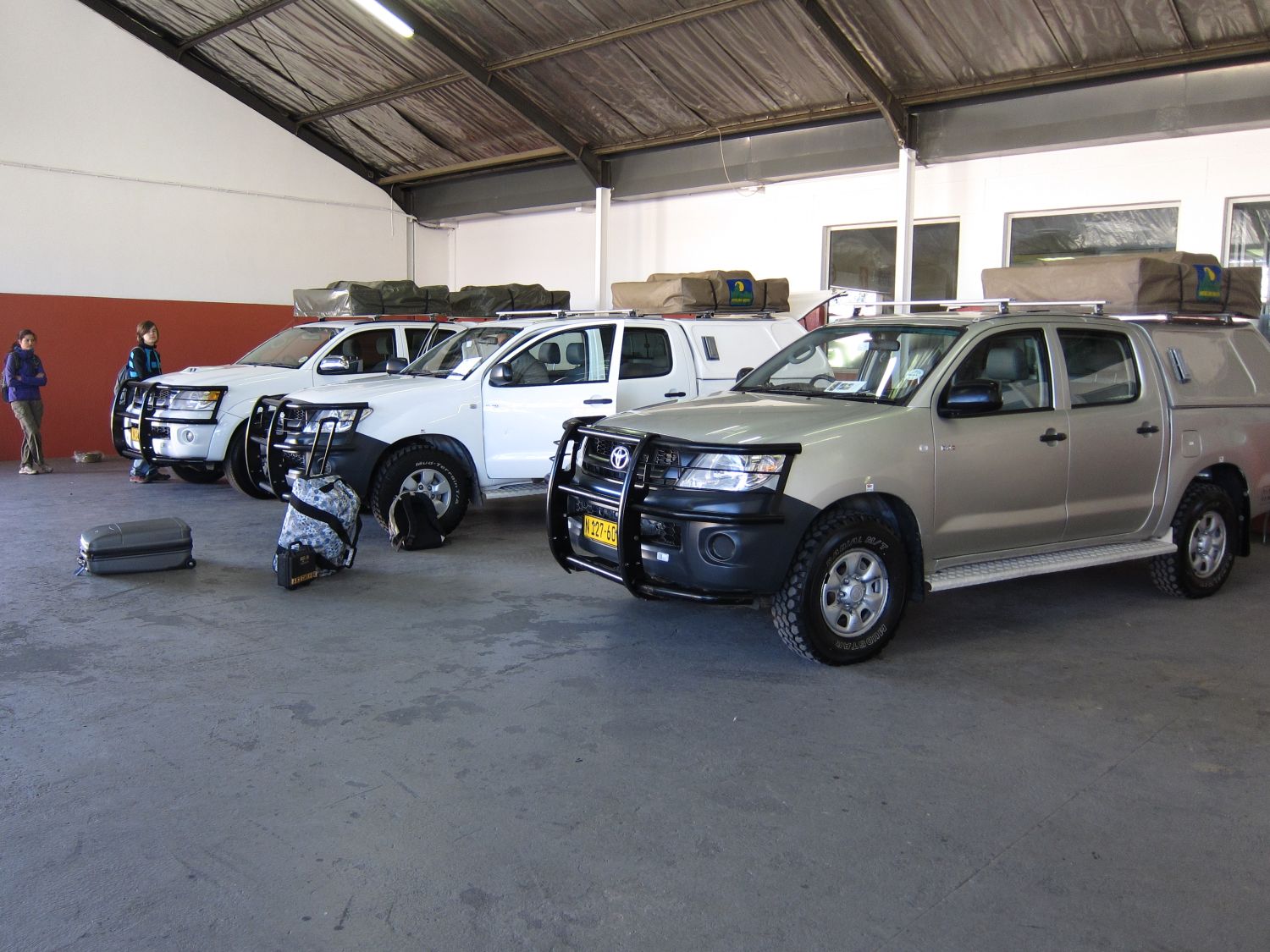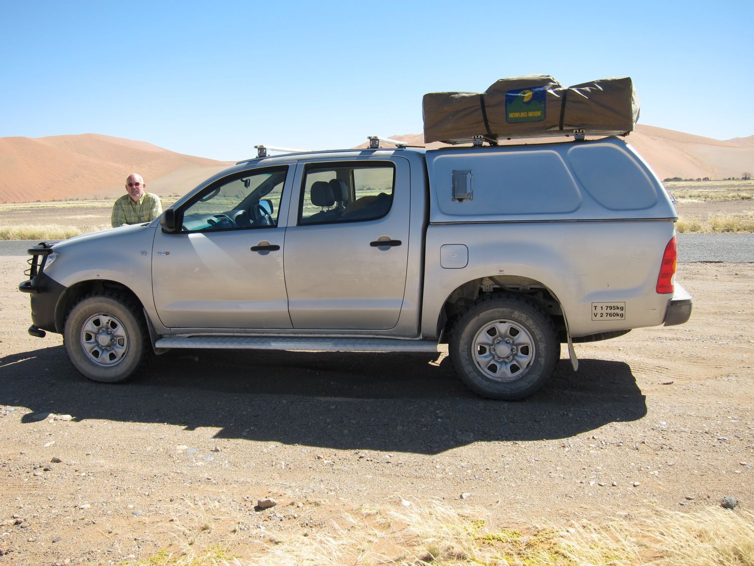 We reden in een Toyota Hilux 2.5lt diesel, 140lt brandstoftank, met daktent (Howling Moon). Beetje weinig vermogen verder een prima 'bak'. Gehuurd