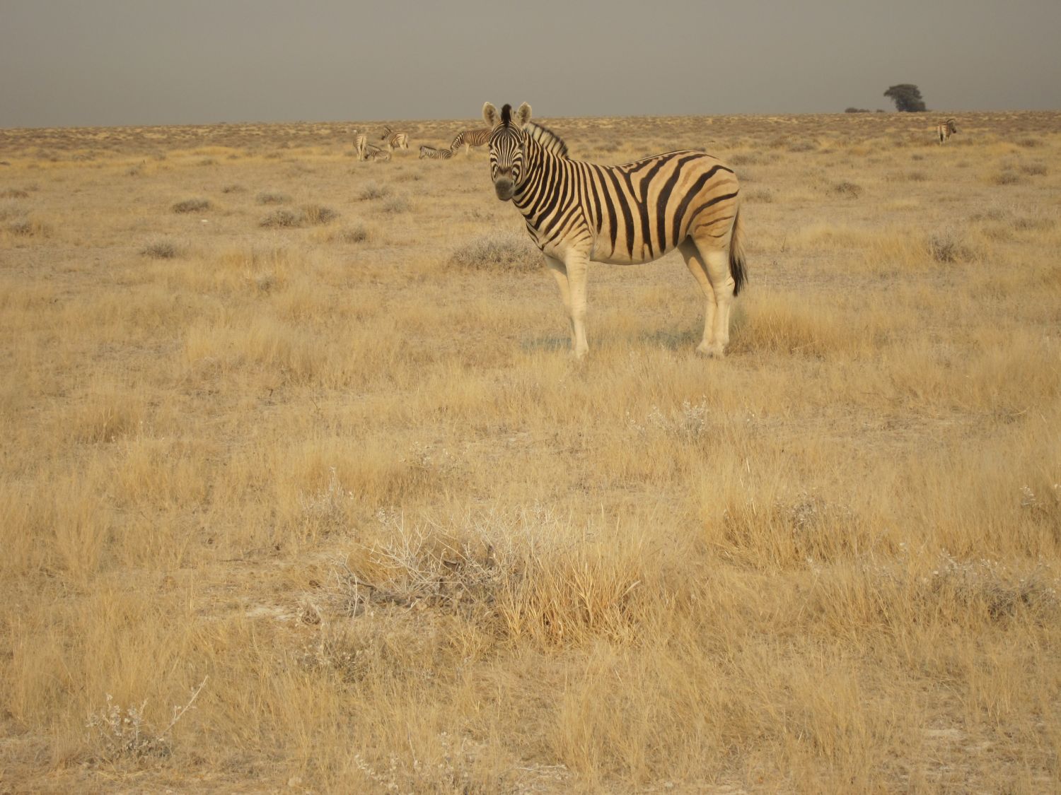 Dag 18: vertrek uit Etosha (hyena, giraffe, wildebeest, kraanvogel, impala, honderden zebra's, flamingo),