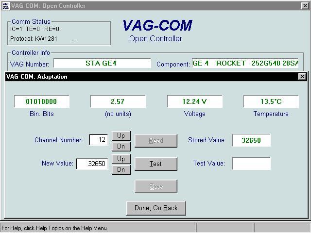 auto moeilijk start bij 13.5 graden C (56 F) zet dan de adaptation value op ongeveer 32650. Als je auto bij die